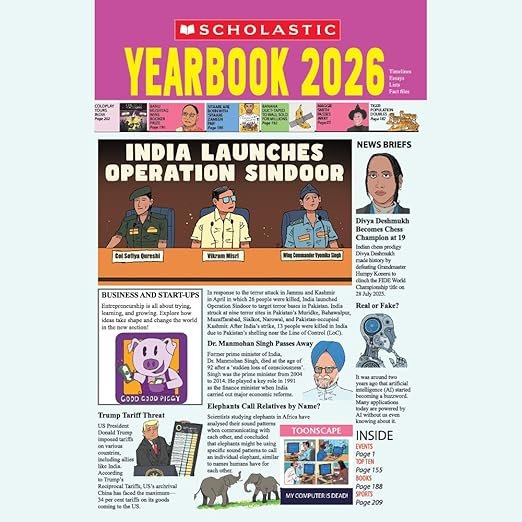 About the Book: Celebrate the 16th edition of the Scholastic Yearbook – Blockbuster Edition packed with exciting new features! Discover key national and global current affairs, political updates, major awards, sports highlights, environmental news, and breakthrough science and space developments. Dive into fascinating facts about Indian states and world countries, top ten records, and the latest buzz from the world of entertainment—all in one engaging and informative annual guide for young readers.